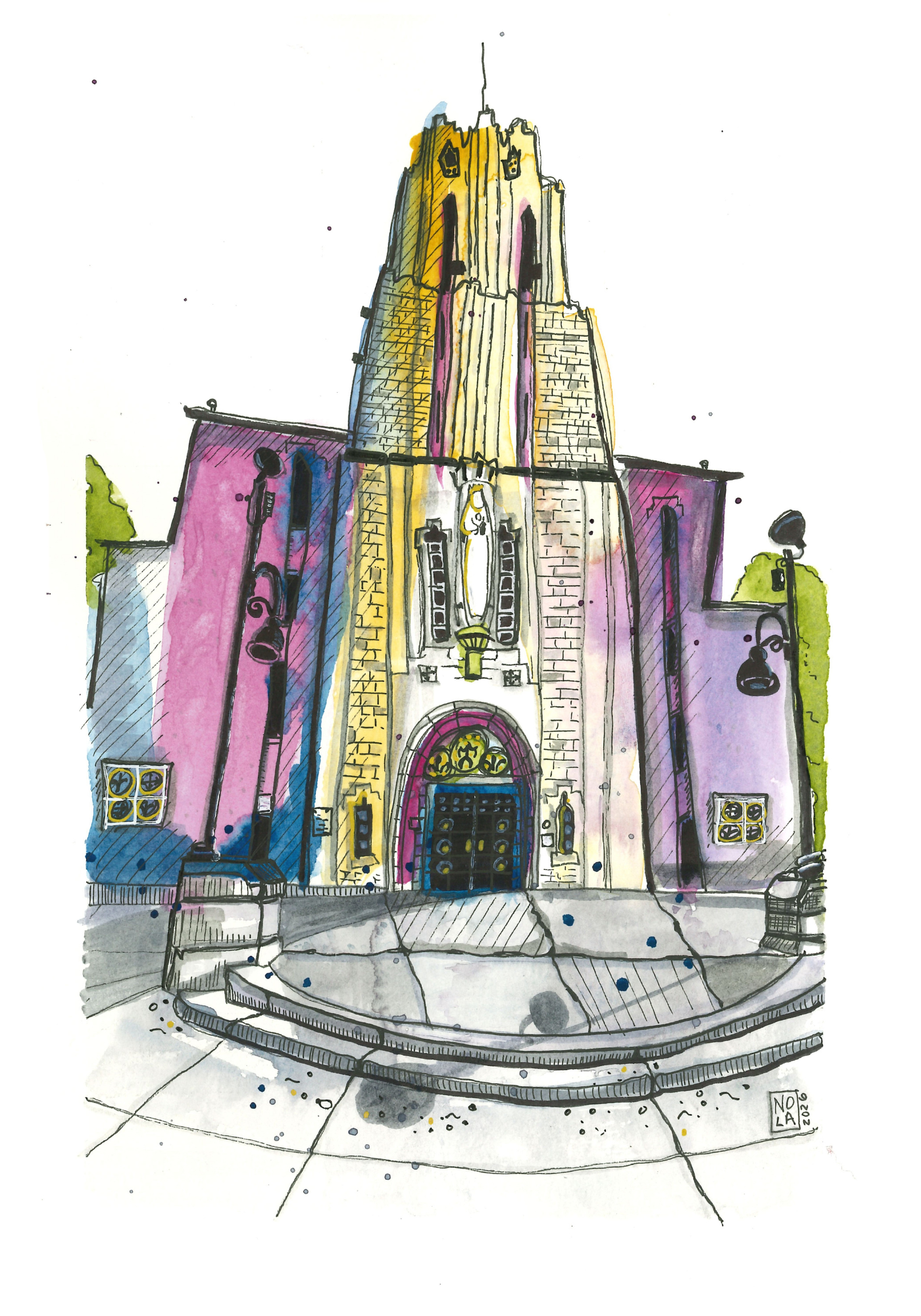 This original ink‑and‑watercolor urban sketch captures the striking silhouette of St. Mary’s Cathedral in Calgary, Alberta — a landmark that rises with quiet confidence in a way that feels both grounded and uplifting.